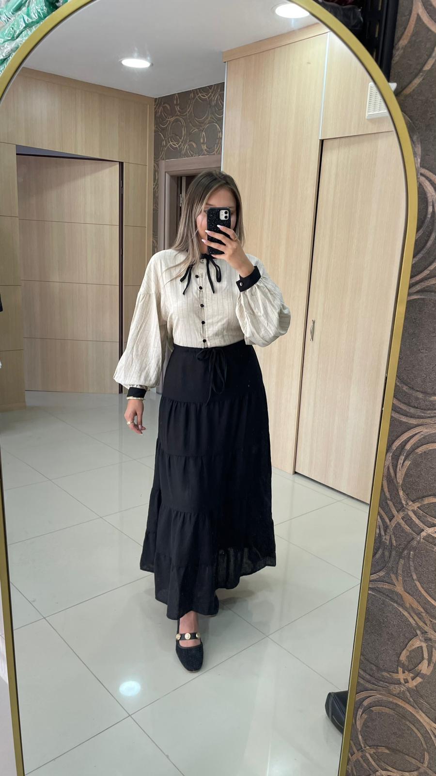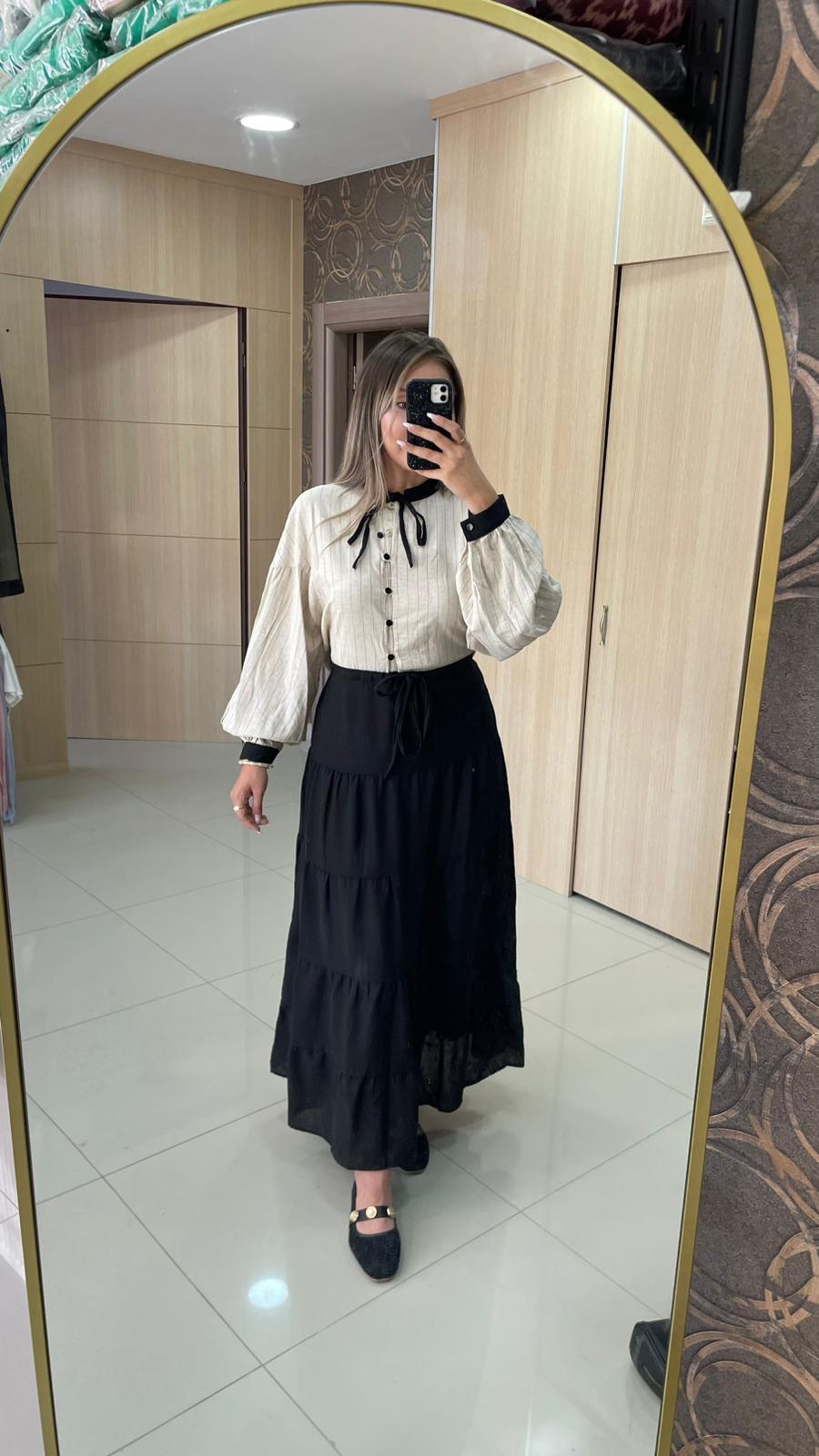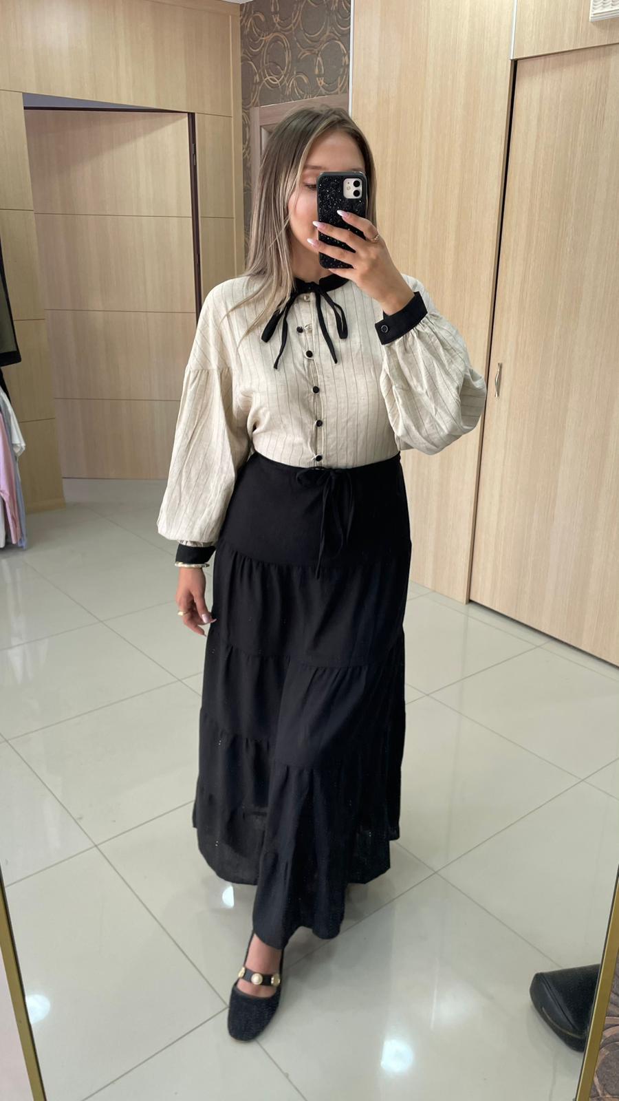 Bej Çizgili Gömlek Etek İkili Takım (IR000000006)