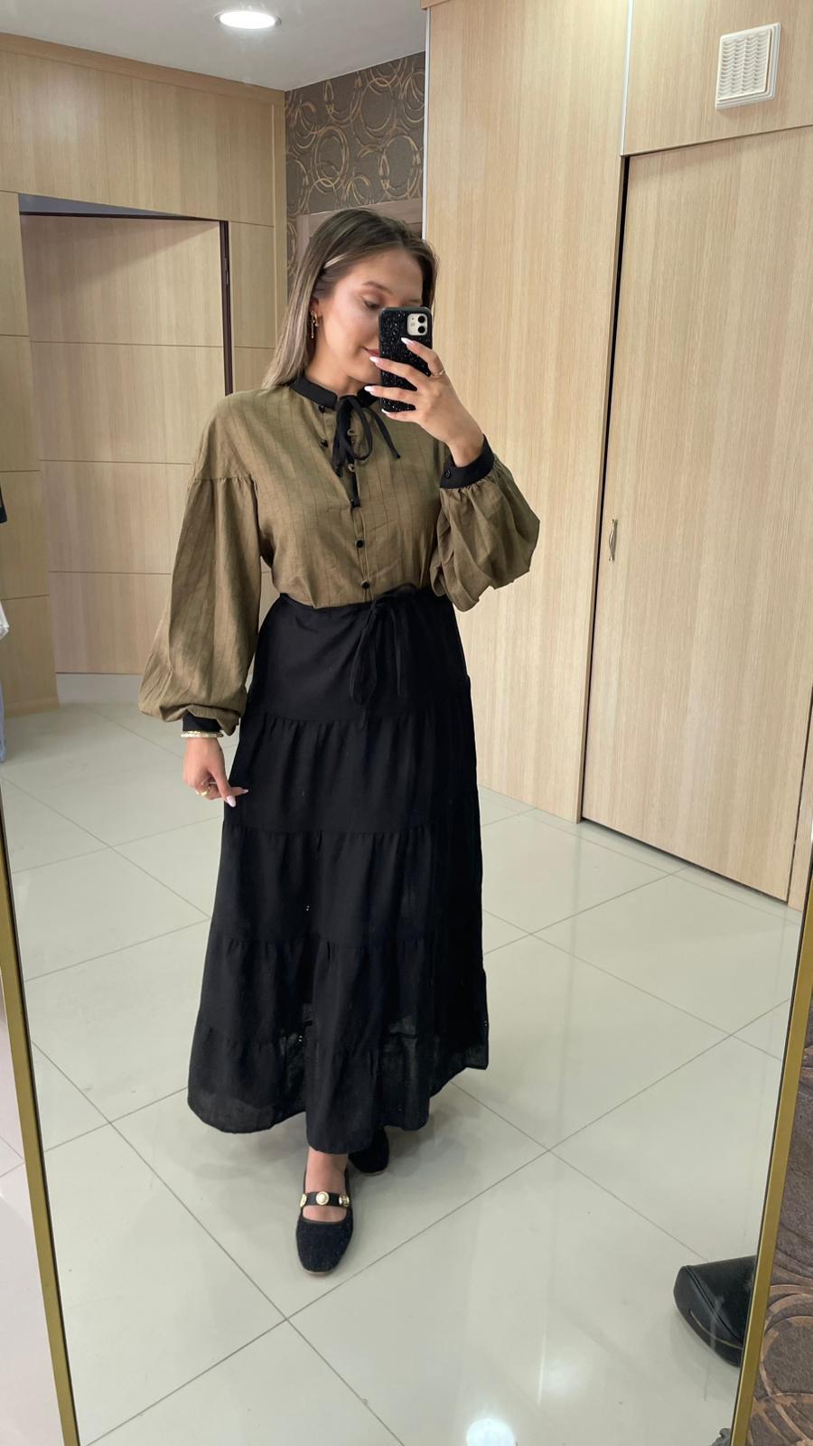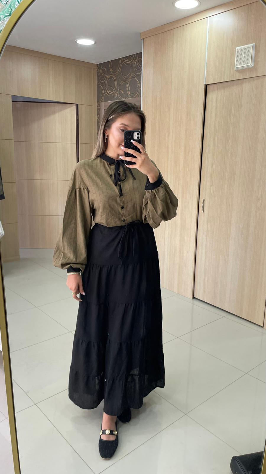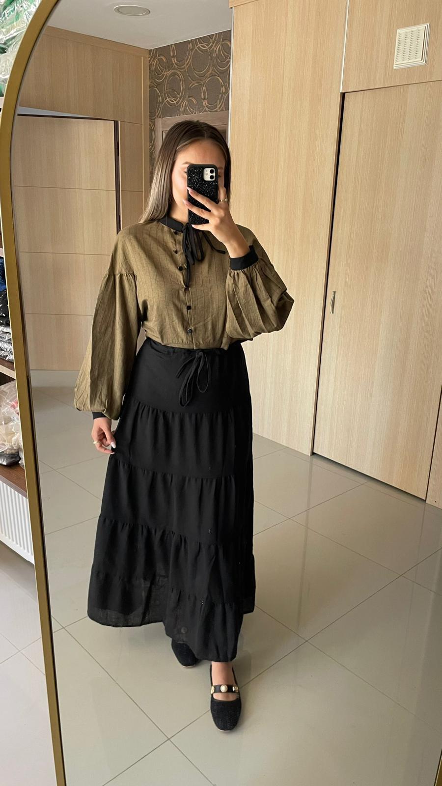 Haki Çizgili Gömlek Etek İkili Takım (IR000000007)